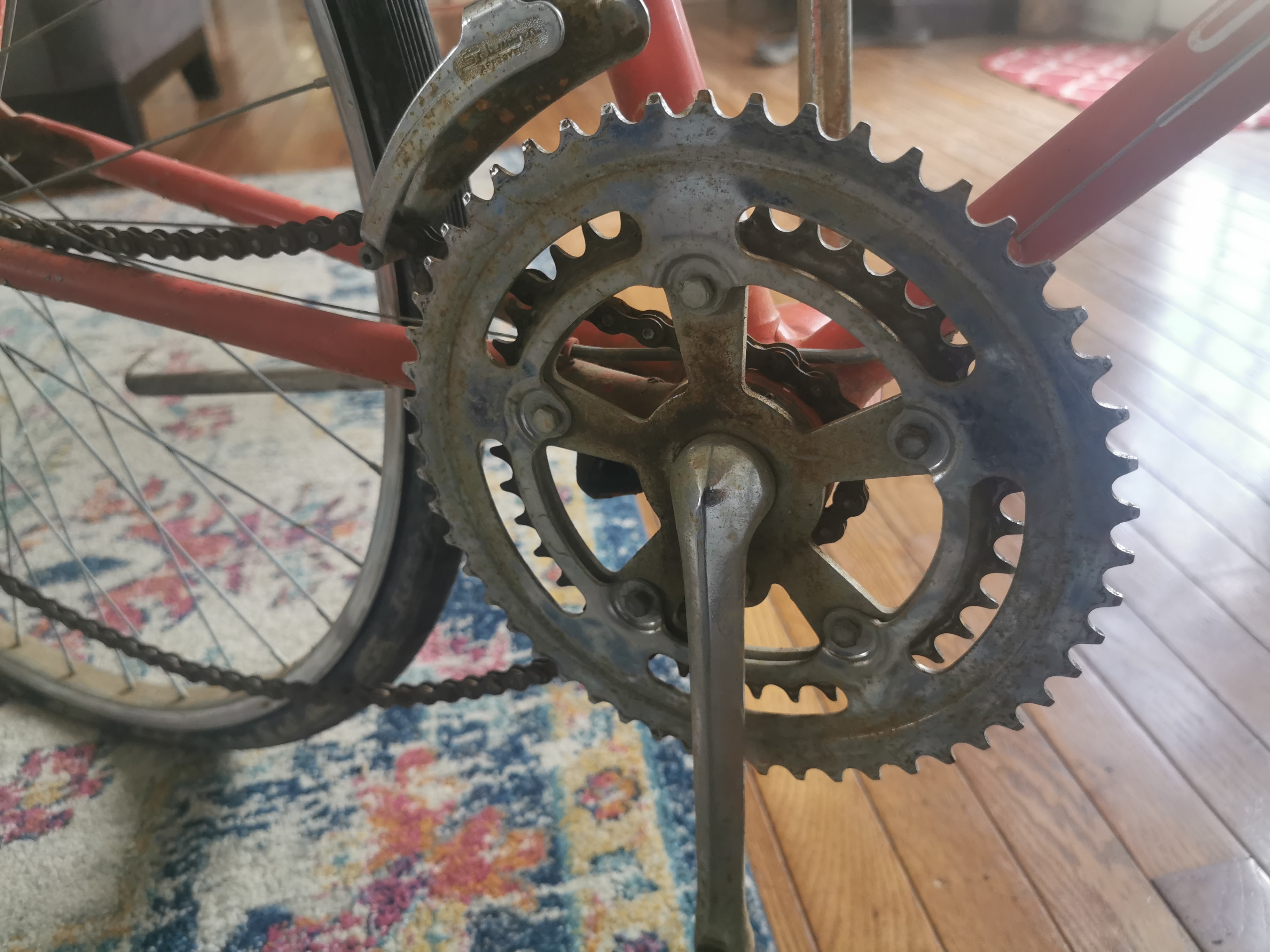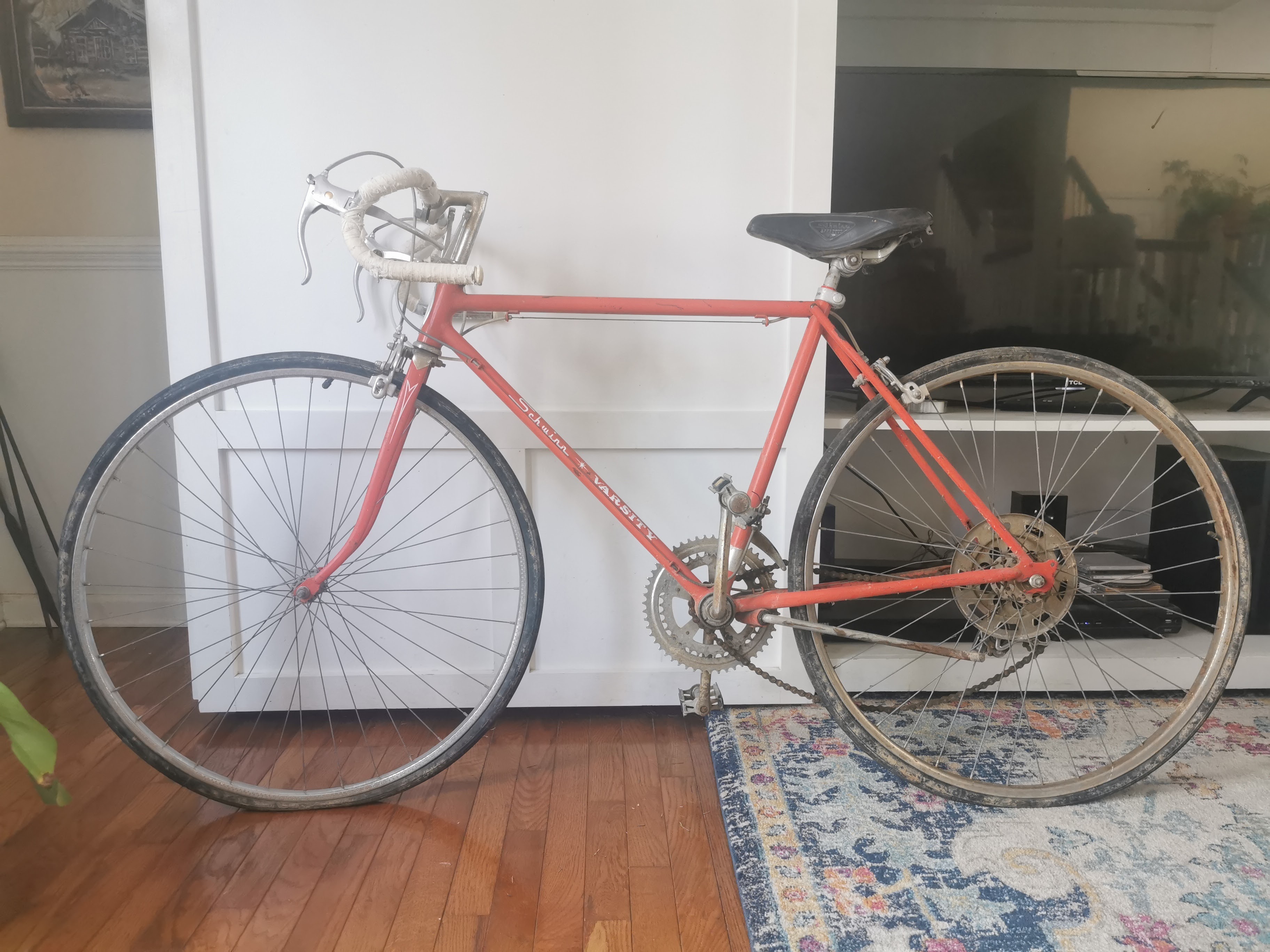So I drove up to White House, Tennessee in mid-January to pick up a junked old Schwinn Varsity. Found it on Craigslist and the price was $25. Exactly the sort of deal I was looking for. I hopped in my car on Sunday morning with the wife and we drove the 2.5 hours up to get it from Chattanooga. It was not in great shape. Every bit of it would need to be cleaned. Thankfully, almost everything was salvageable, except for the consumables: brake pads, tires, tubes, and cables. When we got home I looked up the serial number. Turns out this bike was made in December 1972, but is a 1973 model.