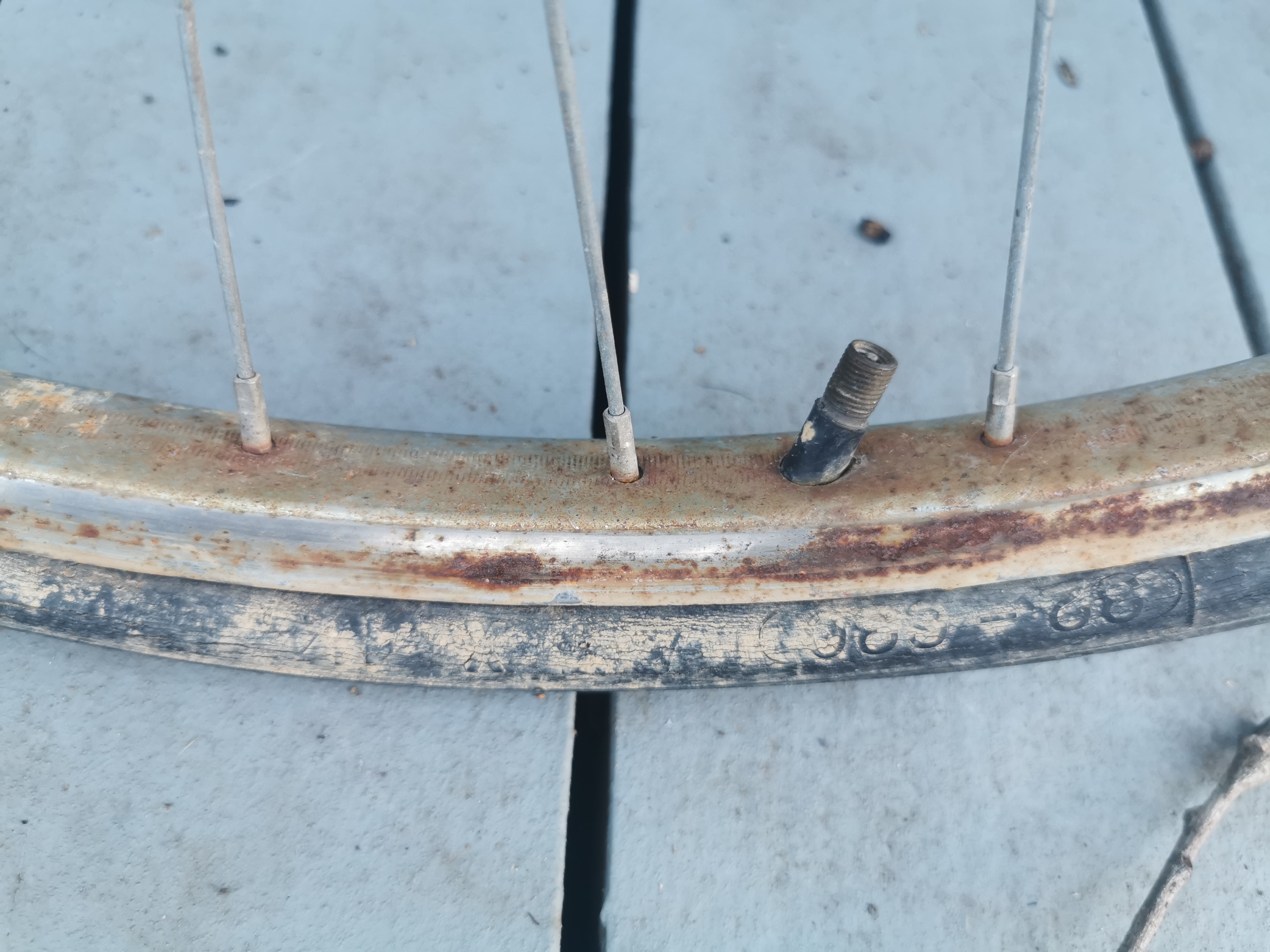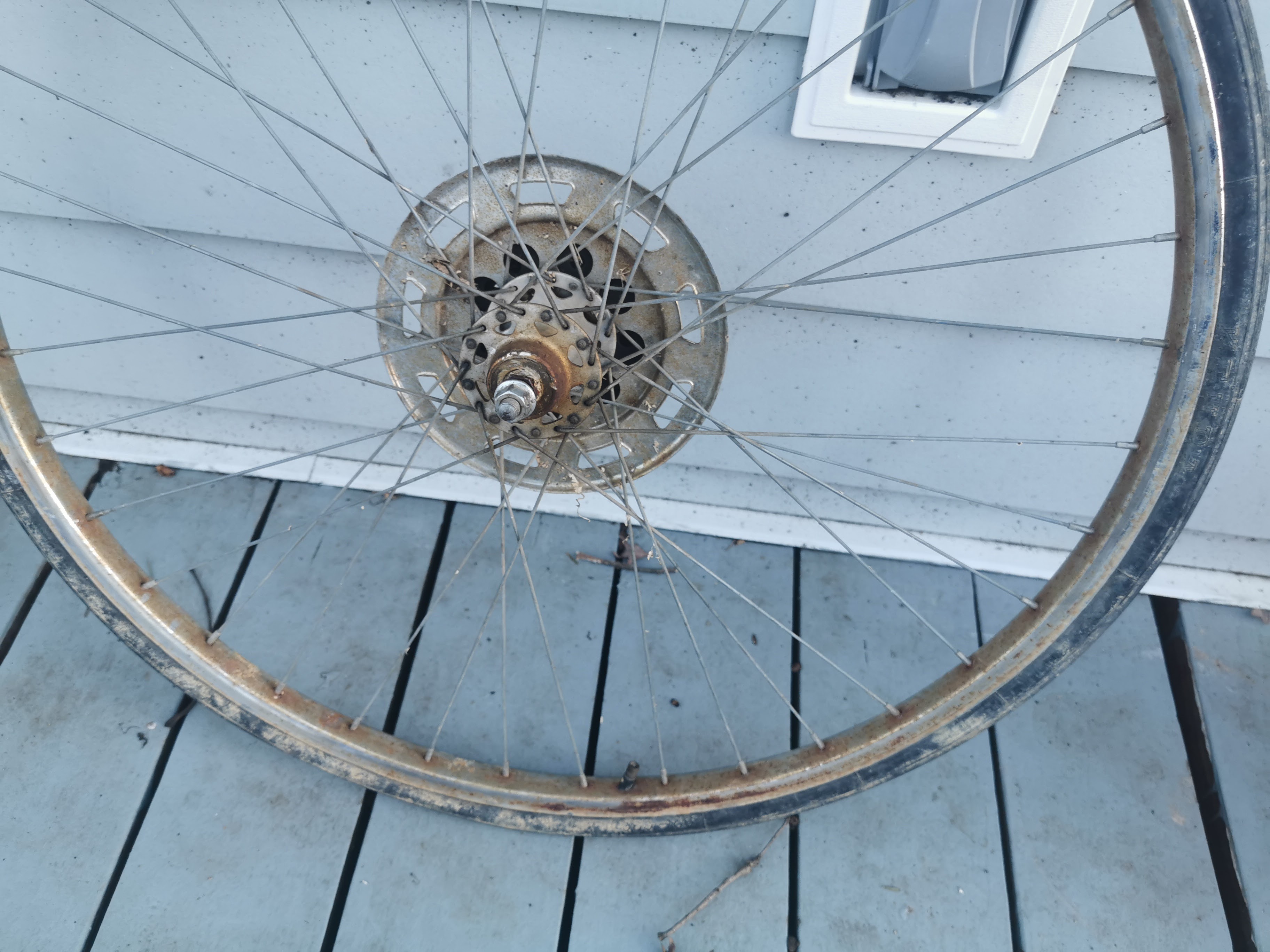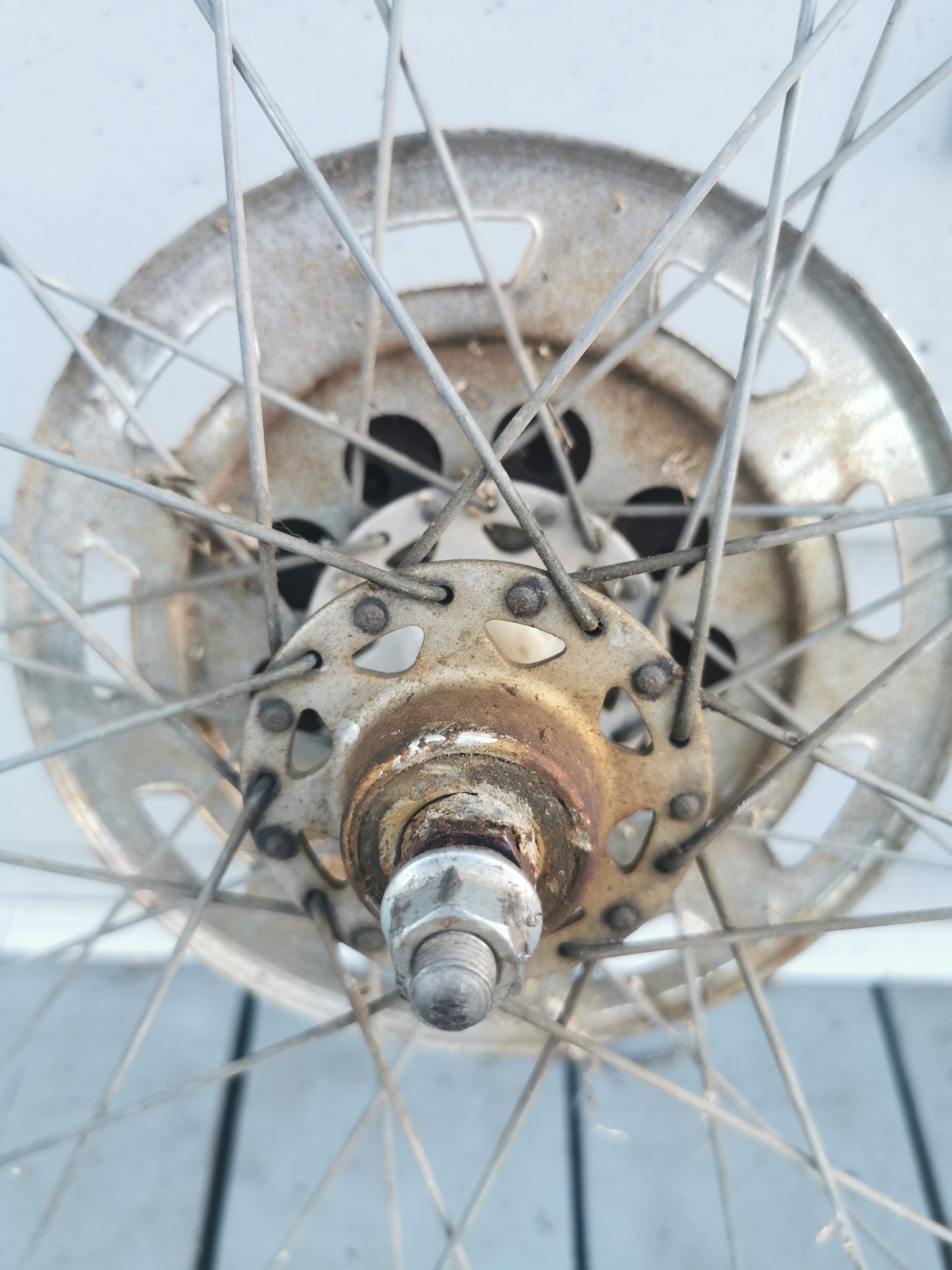 Working on the wheels and tires. Repacked the bearings in the wheels and adjusted the cones. Some before and after pics.
