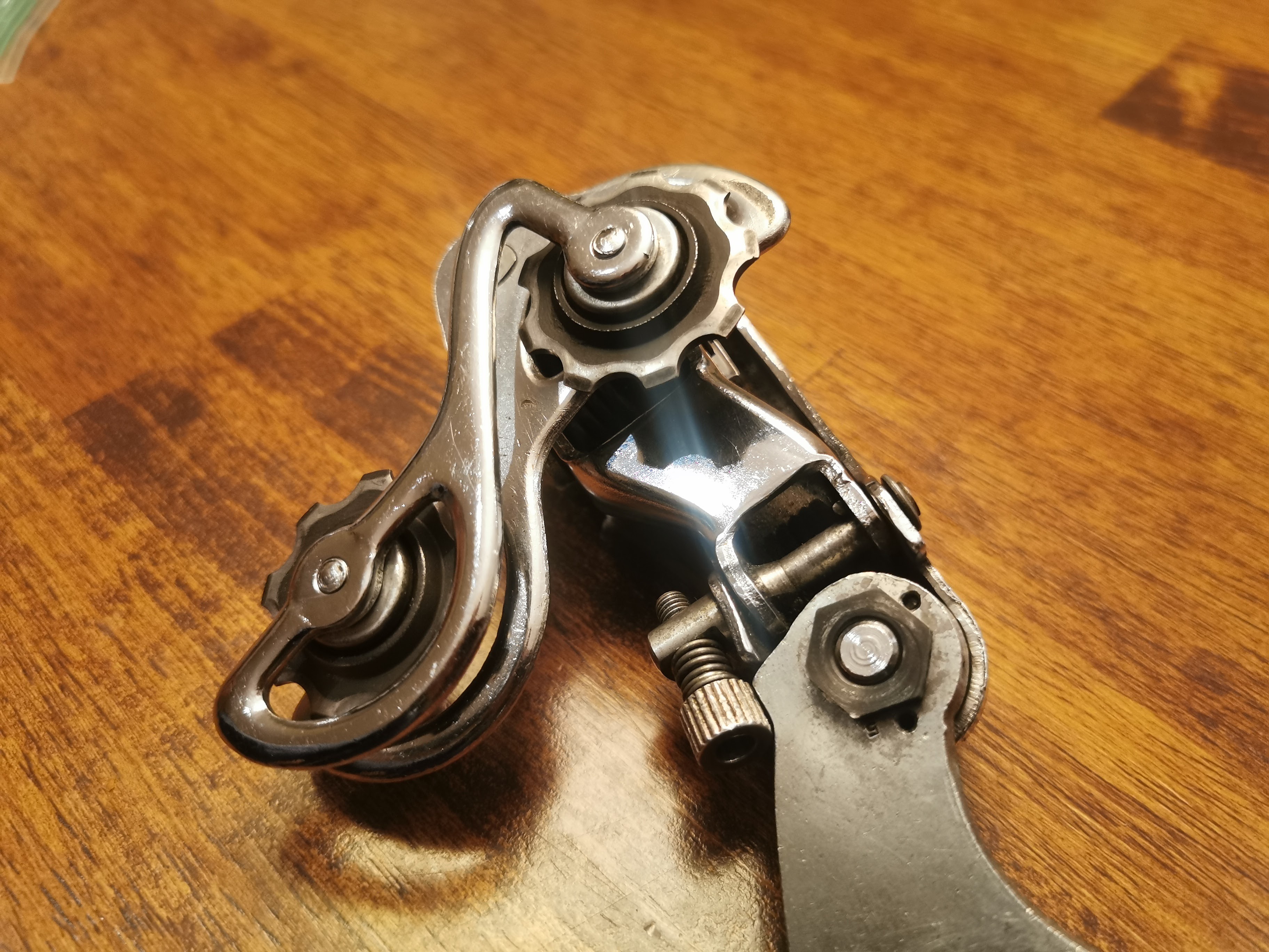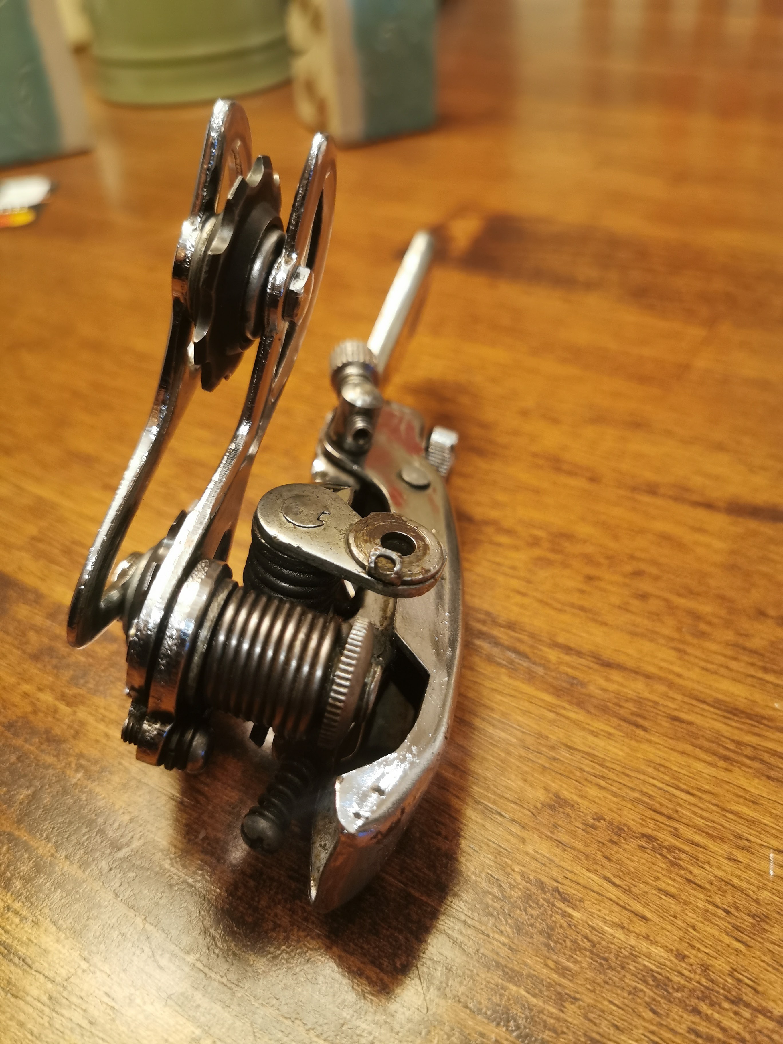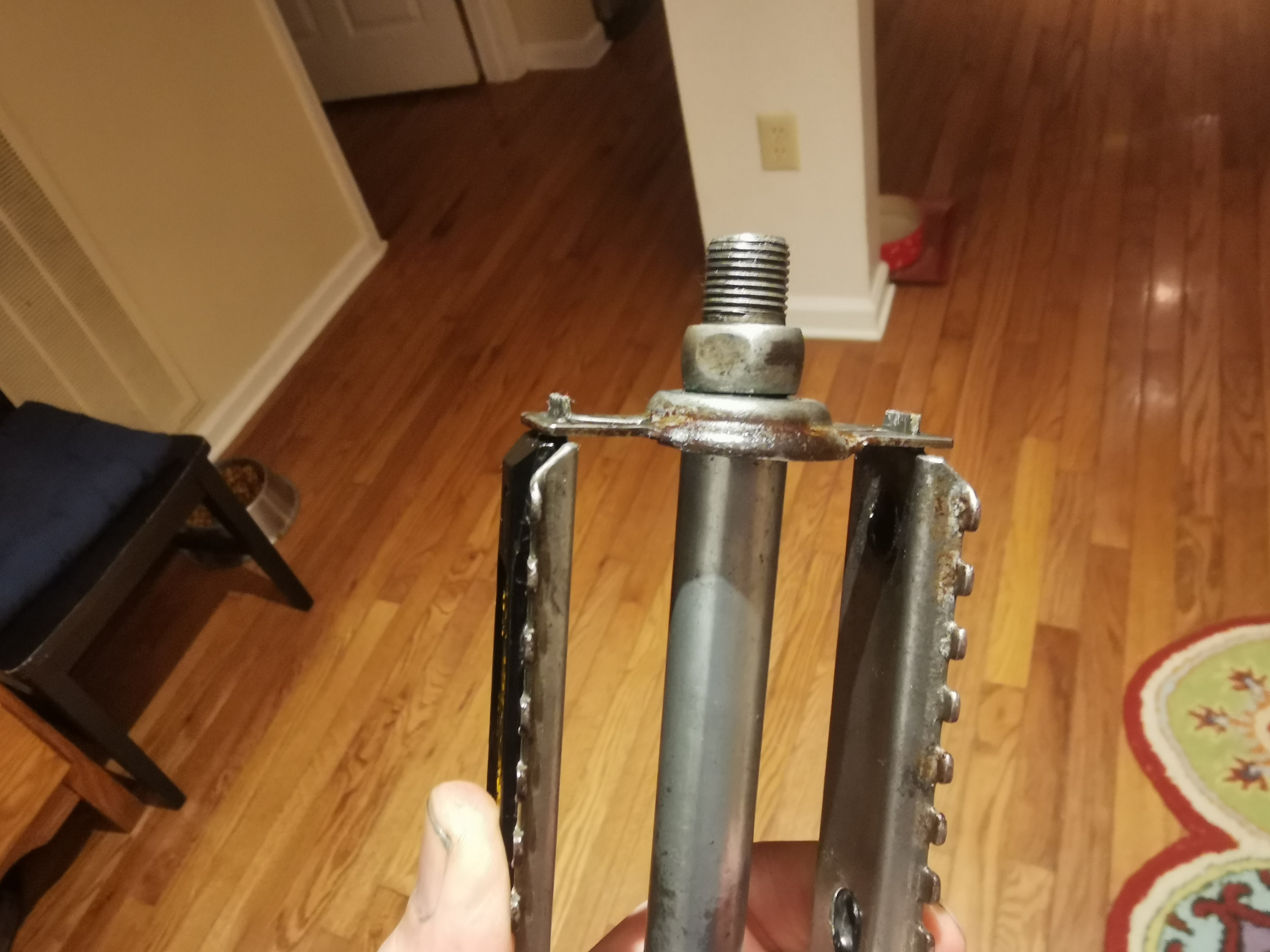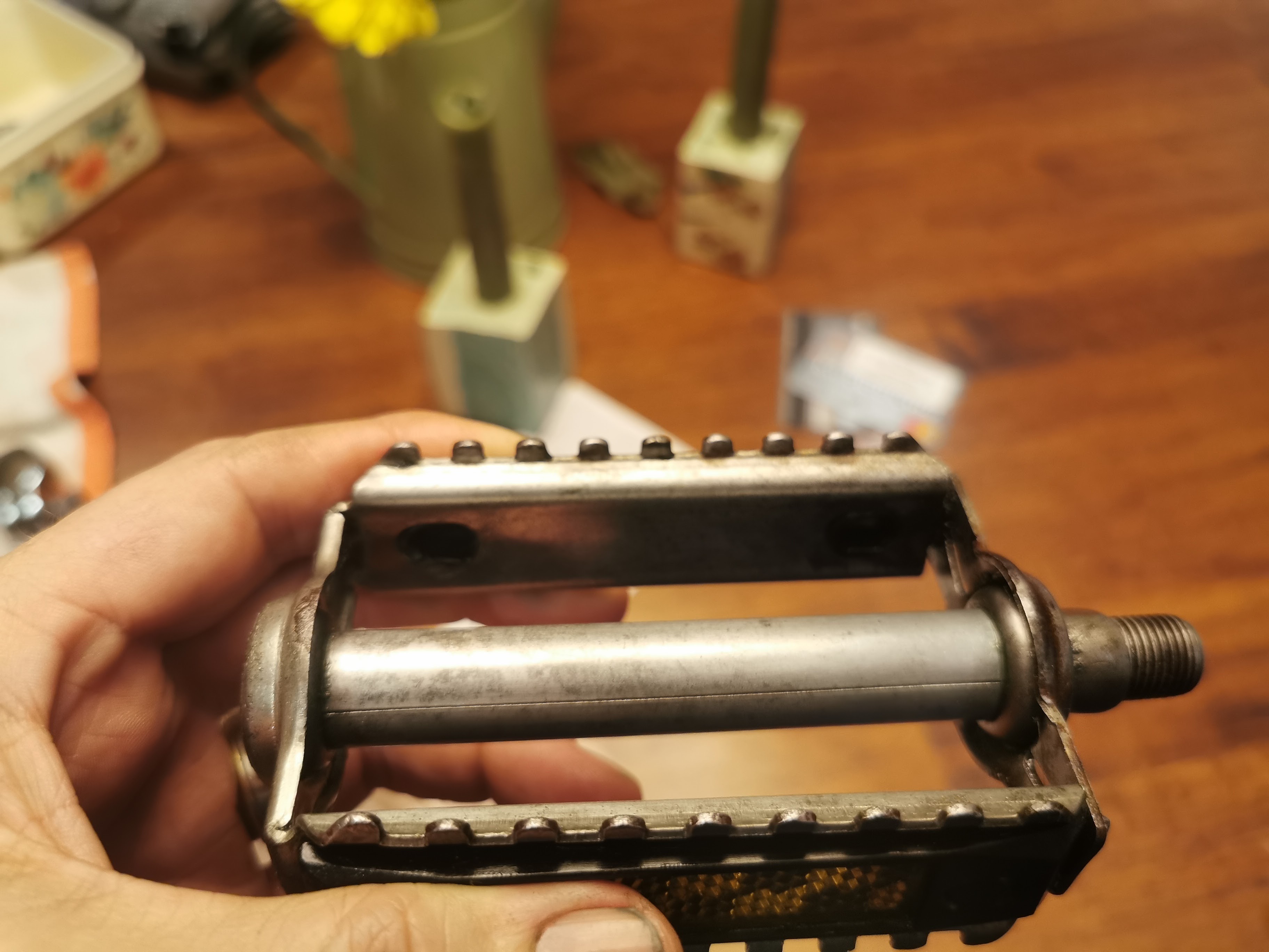 Here are the pedals after they are cleaned on on the bike. Not only are they cleaner, but I repacked the bearings and they spin so much more smoothly now. I was actually resigned to getting new pedals but then decided since I’d stuck with the original color that I may as well just try to keep the entire bike original, excepting the consumables.